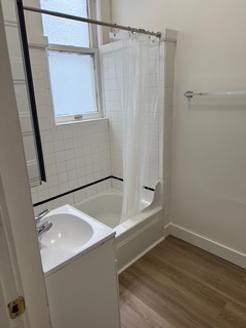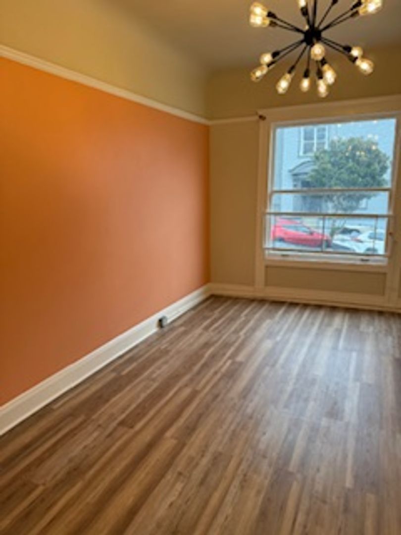 A X LARGE 3 BR apartment with& living room- walk in closet and bay windows with living room. Near Alamo Square with sun drenched, light, bright and High Ceilings Great for students going to USF and UCSF. This unit is on the 1st floor and features wood floors throughout unit. Large remodeled eat-in kitchen with granite counters, gas stove, refrigerator and dishwasher ample storage space and shared deck. Bathroom has shower over tub. Very close to freeway access and public transportation. VIEW!!!!!!!!